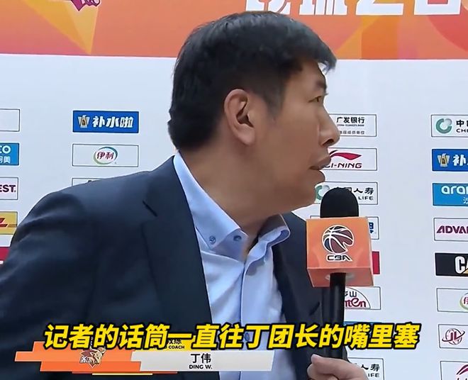 值得一提的是,在赛后,还发生了一件十分有趣的事情!那就是丁伟在接受记者采访的时候,CBA记者不断将话筒往丁伟的嘴上推,很快就要碰到他的嘴巴,在这样的情况下,丁伟也是有点不适应,于是就用手推开了一些,然而,该记者依然是没有领会意思,随后,还是将话筒不断往丁伟嘴上推……