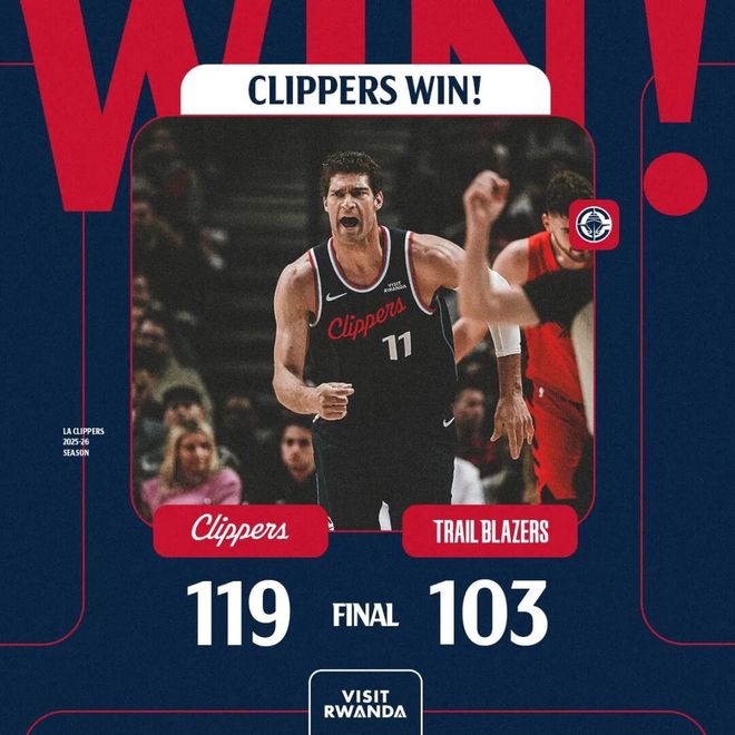 常规赛,快船客场119-103击败开拓者。