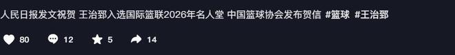 人民日报发文祝贺,王治郅入选2026年国际篮联名人堂