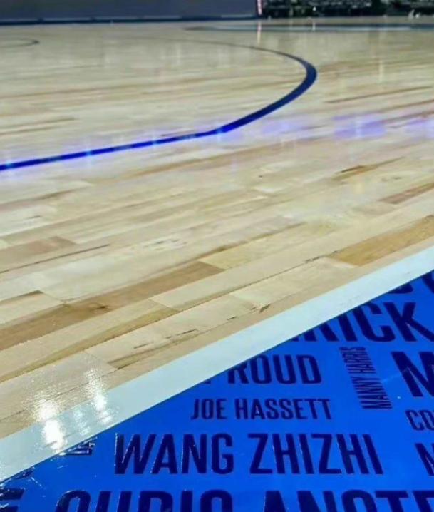 原来独行侠将曾经在球队效力的球员名字印在了场馆的地板上。