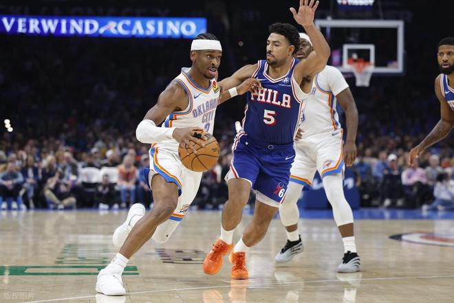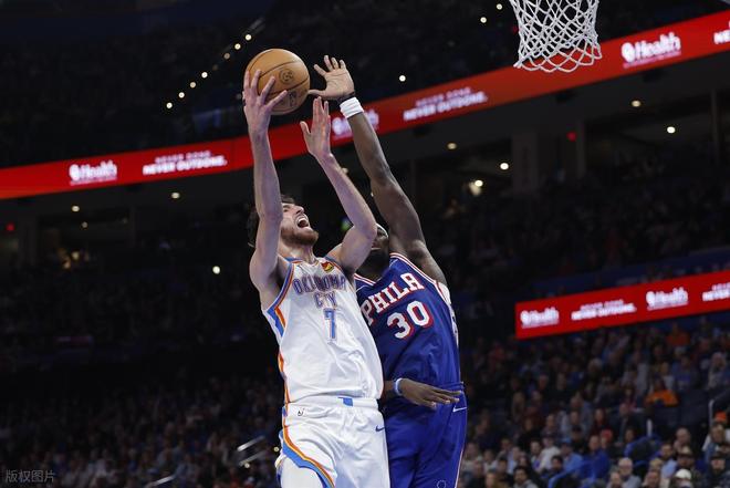 雷霆主场大胜76人,亚历山大降维打击,上半场他投篮9中7,罚球2中2,砍下16分1篮板2助攻2抢断。