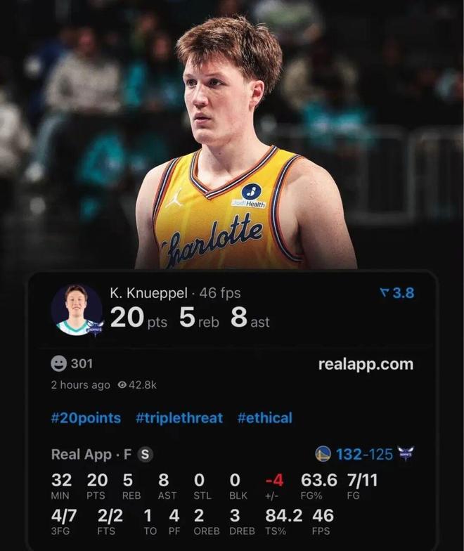 今天砍下20分的克尼佩尔,命中率依旧炸裂