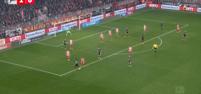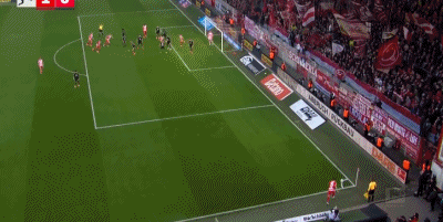 第9分钟,柏林联合左侧角球机会,球罚向禁区,后点奎菲尔德接到队友头球摆渡,再将球顶向门前,安萨头球接力破门。随后VAR介入,经过划线判定,主裁判认为安萨越位,进球无效。赛后,柏林联主帅鲍姆加特向记者抱怨:“第一个球应该算作进球。仅仅因为5毫米的差距就判越位——我们这里谈及的真的是5毫米——有些人简直是疯了。”
