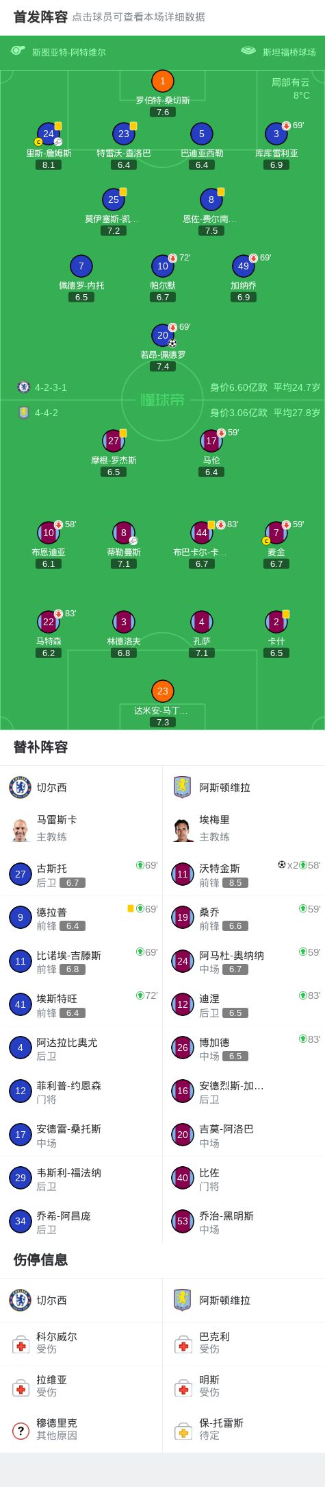剑南春|切尔西1-2维拉,沃特金斯双响,佩德罗破门,马特森逃点