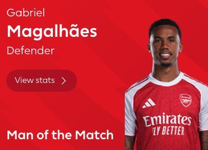 打破僵局,加布里埃尔当选阿森纳vs维拉全场最佳球员