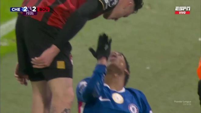 在切尔西对阵伯恩茅斯的比赛中,球队新星埃斯特旺表现十分活跃。而比赛中出现了一幕出人意料的画面:在被对手阿莱士-希门尼斯撞倒后,他竟向对方送出飞吻,还当面大笑。